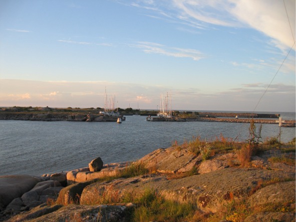 Kalmarissa odotimme kovan tuulen ohimenoa viikonlopun ajan ja maanantaina 18.6. lähdimme varhain eli ennen klo 7 (tai siis Ari irrotti köydet, minä jatkoin vielä uniani) etelään päin. Luvassa piti olla kevyttä lännen ja luoteen välistä tuulta ja sitä se lähtiessä olikin ja etenimme leppoisasti purjein. Sitten tuuli tyyntyi, pohjoispuolella näkyi synkkiä pilviä ja vähän ajan kuluttua tuuli muuttui vastaiseksi eli lounaistuuleksi. Ajoimme koneella, kunnes Kalmarsundille tyypillisesti tuuli voimistui sen verran, että ainut järkevä etenemistapa oli alkaa luovia. Tähän asti olimme matkan aikana välttäneet ikävät vastatuulet, mutta nyt saimme jälleen kokea Itämeren lyhyen, mutta korkean aallokon. Vettä lensi välillä istuinkaukaloon ja toisinaan aallot olivat niin lyhyitä mutta korkeita, että keula ei ehtinyt nousta edellisestä aallosta, kun uusi oli jo kohdalla ja silloin aalto vyöryi koko kannen ylitse. Hitaasti, mutta varmasti etenimme kuitenkin kohti päivän määräsatamaa Utklippania, jossa olimme klo 19.40 ja matkaa luovimisen vuoksi tuli 67 mailia. Lähes 8 tuntia tuli luovittua märässä kelissä (sadetta emme saaneet päällemme).