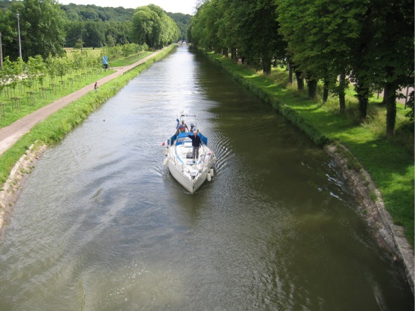 Alunperin olimme aikoneet autoilla Tsekissä, mutta vuokraamo rajoitti autoilua entisen itäblokin maissa: sinne olisi saanut mennä vain tietyillä autoilla ja se olisi maksanut n. 100 euroa lisää. Hetken mietittyämme teimme uuden suunnitelman ja juhannusaattoaamuna suuntasimmekin auton keulan kohti Etelä-Saksaa. Matkamme ensimmäinen kohde oli tavata Necesse-veneen väki Ranskassa. Olimme tutustuneet heihin kesällä 2004 matkatessamme osan matkaa yhdessä Englannista Portugaliin. Lissabonissa tiemme erosivat, me suuntasimme kohti Välimerta ja he kohti Madeiraa ja edelleen Kanarian kautta Atlantin yli. He ovat nyt kiertäneet kolmen vuoden aikana maapallon ja matkaavat kanavia pitkin Välimereltä kohti Itämerta ja Suomea. Tekstiviestein seurasimme nyt toistemme etenemistä ja sovimme tapaamispaikan syödäksemme yhteisen juhannuspäivän illallisen. Ajoitus oli mainio, saavuimme vain hieman ennen heitä Saone-joen varrella olevaan pieneen ranskalaiseen Port-sur-Saonen kaupunkiin. Kyllä oli riemukasta tavata ja juttua riitti, ruokakin oli hyvää. Matka on mennyt heillä kokonaisuutenaan hyvin (matkan tarinat heidän nettisivuillaan www.ruotsalainen.net). Pieni yksityiskohta illan ruokapaikan etsinnästä. Lähdimme Necesseltä kävellen etsimään ravintolaa. Kun sitä ei heti löytynyt, niin Kari kysyi eräältä pysähtyneeltä autoilijalta ravintolaa. Kyseinen autoilija ei käynyt selittämään paikkaa, vaan kehotti hyppäämään kyytiin ja hän vei meidät muutaman sadan metrin päässä olevan ravintolan luokse. Ystävällisiä nuo ranskalaisetkin.