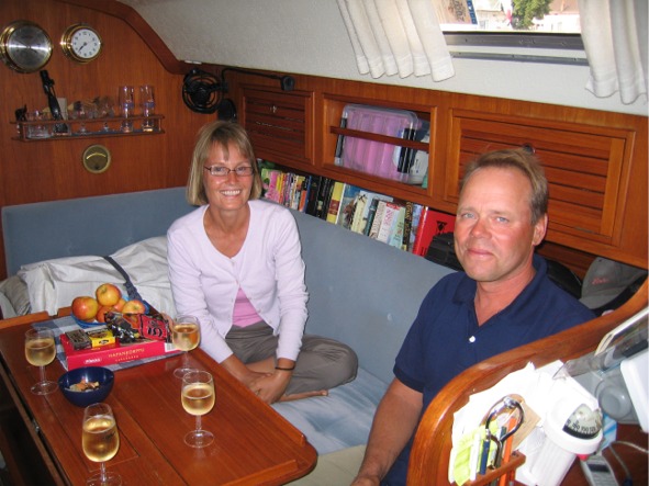 Tiistaina lähdimme jälleen liikkeelle jo ennen klo 7. Nyt oli ihan mukava purjehduskeli: tuuli 5-7 m/s lännen ja luoteen väliltä ja aurinko paistoi. Päivän mittaan tuuli kääntyi vastaisemmaksi ja heikkeni, joten loppumatkan ajoimme koneella. Kahdentoista tunnin kuluttua saavuimme Bornholmin saarelle Rönneen, joka on Tanskaa. Matkaa tuli 65 mailia. Satamaan tullessamme hämmästyimme, miten paljon siellä oli veneitä. Saksalaiset olivat selvästi lähteneet kesälomapurjehduksilleen. Satamakapteeni tuli hyvin ystävällisesti ottamaan köysiä vastaan ja selitti, mistä löytyy mitäkin (ensimmäistä kertaa kohtasimme tilanteen, että satamamaksu maksettiin automaatissa pankki-/ luottokortilla).