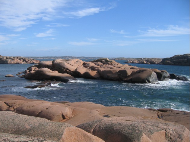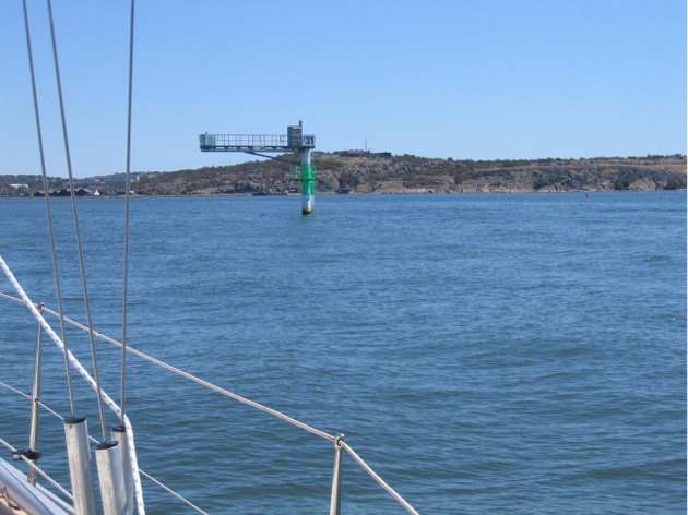 Göteborgissa emme viipyneet yhtä yötä kauemmin, vaan perjantaiaamuna jatkoimme matkaa pohjoiseen päin. Päästyämme Göteborgista ulos, saimme pitkästä aikaa purjeet ylös ja meillä oli oikein mukavaa purjehdusta. Tuuli oli lounaasta noin 8 m/s ja myötävirran ansiosta liikuimme välillä reilusti yli 7 solmua; liekö perusvirtauksia vai vuoroveden aiheuttamia virtoja; näillä alueilla vuorovesi näytti olevan noin 30 cm. Aluksi suunnistaminen tuntui oudolta, koska kaikki saaret ja luodot olivat puuttomia, niin oli vaikea hahmottaa saarten muotoja ja keksiä, mihin väliin olemme menossa, joten tarkkana piti aluksi olla. Ruotsissa, kuten monissa muissakin maissa, suunnistaminen eroaa Suomesta siinä, ettei väylätauluja juurikaan ole. Loistot ja väylämerkit riittävät kylläkin aika hyvin, sillä rannat ovat yleensä syviä. Meillä ei ole plotteriin karttaa tältä alueelta, emmekä olleet ottaneet GPS:ään pisteitä.