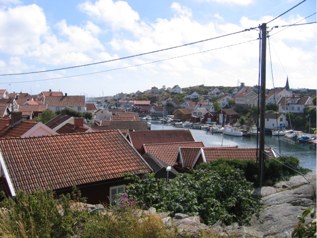 Heinäkuun ensimmäinen päivä, tiistai, valkeni kauniina. Tuulta oli vielä sen verran, että teimme reivin ja lähdimme etelään päin. Alunperin olimme pohtineet jopa Norjan puolelle koukkaamista, mutta kesäkuun epävakaat säät muuttivat mielemme ja päätimme katsella vain Göteborgin pohjoispuolen saaristoa. Nyt tuntui siltä, että olimme saaneet alueesta sen verran käsitystä, että oli sopiva hetki lähteä pikku hiljaa paluumatkalle. Siis tiistaina aamupäivästä seilasimme reippaassa mutta mukavassa länsi(lounais)tuulessa kohti etelää. Tulomatkalla olimme ohi mennessämme katselleet muutamaa mukavan näköistä paikkaa, jotka aioimme nyt paluumatkalla tutkia tarkemmin. Ensimmäinen näistä oli vanha kalastajakylä Gullholmen (väitetään Ruotsin vanhimmaksi), jonne Lysekilistä oli vain noin 5 mailin matka. Perillä olimme siis jo ennen puolta päivää. Päivä oli lämmin ja oli mukava käyskennellä kylän raitilla shortsikelissä sekä katsella satamaan tulevia ja ohitse seilaavia veneitä. Illalla Ari kävi heittelemässä virvelillä ja saaliina oli pieni merivuokko. Minä kävelin kallioilla ja poikkesin avoinna olevalla luotsituvalla, jossa innostunut vanha mies kertoili saaren historiaa (makrillien pyynnistä ja niiden myynnistä Norjan kautta Amerikkaan). Samalla selvisi, että Gullholmenissa asuu läpi vuoden noin 100 henkilöä, mikä on minusta aika paljon.
