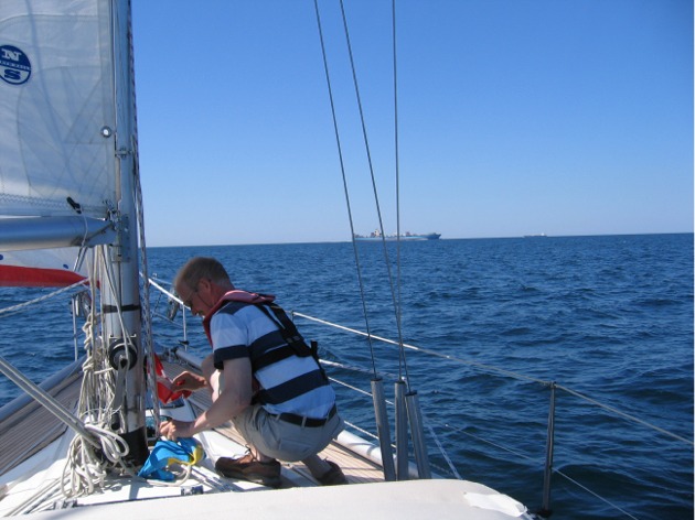 Päivän sää vaihteli pilvisestä puolipilviseen ja lämpötila oli noin 23 astetta. Tuuli kääntyi päivän mittaan lännestä etelä-lounaaseen ja voimakkuudeltaan oli aluksi sen verran voimakas, että teimme reivin. Läsön saaren kärjen kierrettyämme otimme suunnan kohti Tanskan ja Ruotsin välistä salmea. Etenimme välillä reilua 7 solmua, välillä vain 3 solmua, pääasiassa 5-6 solmua. Kun tuulen suunta vaihtui iltapäivästä niin, ettemme enää nousseet haluttuun suuntaan, muutimme kurssia 20 astetta ja suuntasimme Tanskan sijasta Ruotsiin. Emme alkaneet luovia, sillä silloin Helsingöriin saapuminen olisi mennyt aamuyölle. Myöhemmin tuuli heikkeni, purimme reivin ja lopulta kaksi viimeistä tuntia ajoimme koneella. Saavuimme Ruotsin Törekoviin klo 20.40 ja 78 mailia oli takana. Eräästä ruotsalaisesta moottoriveneestä toivoteltiin iloisesti suomeksi tervetulleeksi (rouva oli vuosikymmeniä sitten muuttanut Ruotsiin, mutta oli edelleen säilyttänyt yhteydet Suomeen ja hallitsi suomen kielen) ja niinpä kiinnityimme kyseisen veneen kylkeen.