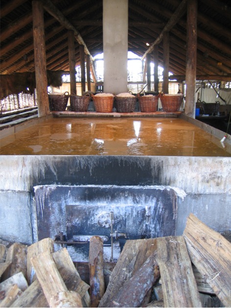 Eräs suolan valmistusallas, veden kuumennus haloilla.