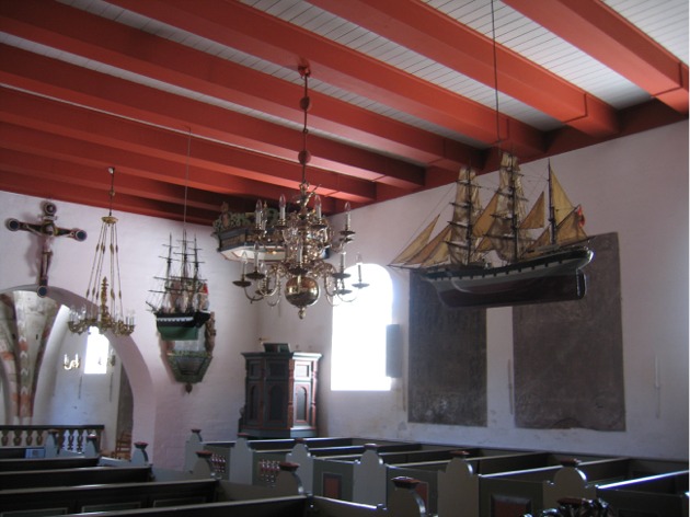 Kirkot olivat lähes identtisiä, laivat ovat oleellinen osa kirkkojen sisustuksesta.Sunnuntaina 6.7. herättelimme vieressämme olleen veneen nuoren väen irrottelemaan köysiä, kun teimme lähtöä jo klo 6.20. Olimme kyllä jo edellisenä päivänä kertoneet heille lähtöaikamme ja he olivat iloisesti pyytäneet aamulla vaan koputtelemaan heidät hereille ja niin siis teimme. Nyt he näyttivät vähän unisilta hieman pitkään vierähtäneen illan jäljiltä.