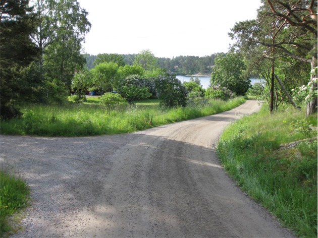 Ingmarsön maalaismaisemaa.Ingmarsö tuntui niin mukavalta paikalta, että päätimme olla perjantainkin siellä. Aamupäivällä ehdimme kävellä kauniissa säässä kaupassa (reilun kilometrin matkan tai suorempaa olisi päässyt soutaen lahden poikki) ja sitten puoliltapäivin alkoi jälleen sade, joka jatkuikin käytännöllisesti katsoen koko ajan seuraavat kolme vuorokautta.