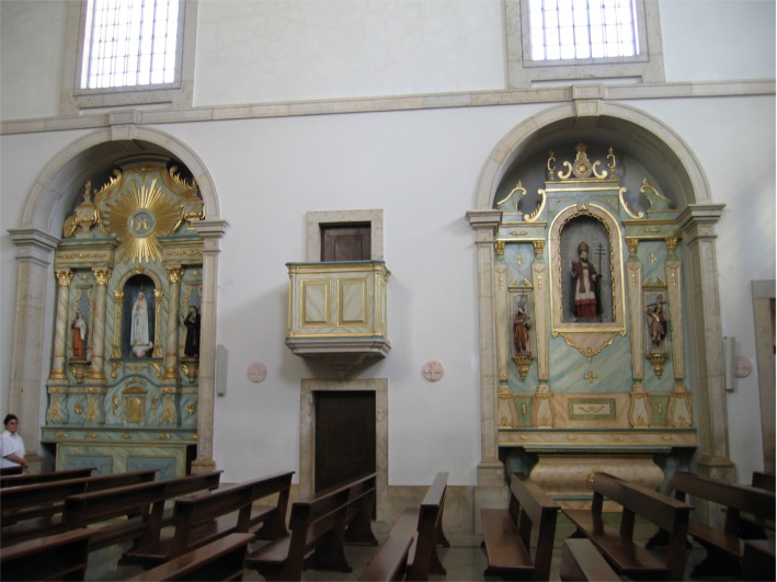 Ohi kulkiessamme piipahdamme usein katsomassa kirkkoja, ovathan ne aika erilaisia kuin Suomessa. Tässä Albufeiran erään kirkon sivualttareita. |