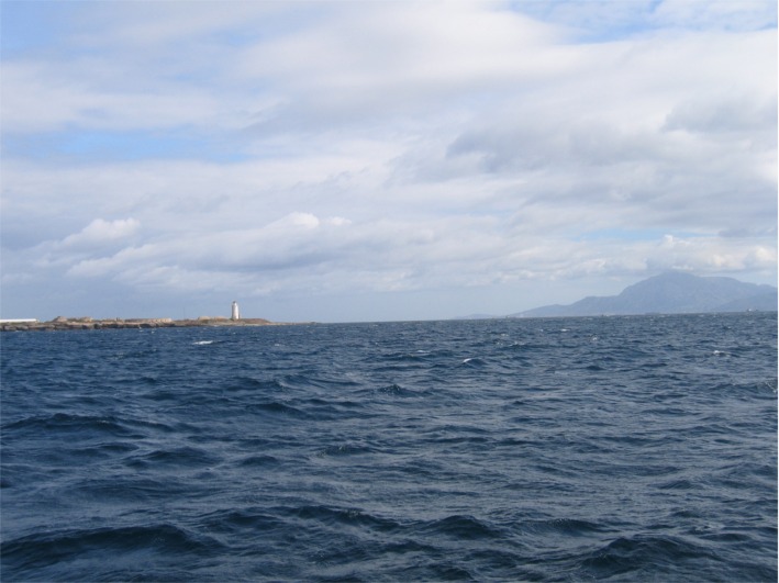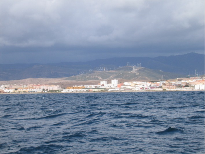 Tarifassa näkyi pitkästä aikaa tuulivoimaloita (nuo valkoiset tapit). |