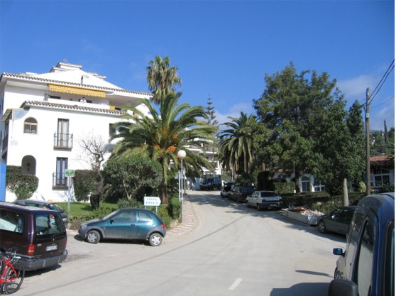 Marina del Este oli viehättävä poukama. Aivan ilmeisesti oikealla oleva vihreä töyräs oli keinokasteltua aluetta. |