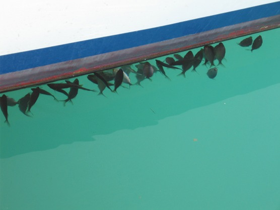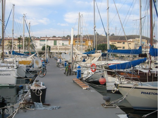 Velezissä, kuten monissa muissakin satamissa, joissa on pitkäaikaisia asukkaita, on laitureilla mm. polkupyöriä ja satelliittiantenneja. |