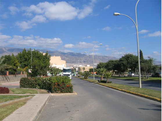 Alas lasketeltuamme tulimme lähikaupunkiimme El Ejidoon. |