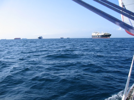 Gibraltarilla oli runsaasti laivoja ankkurissa mm. odottamassa tankkausta säiliöaluksesta.