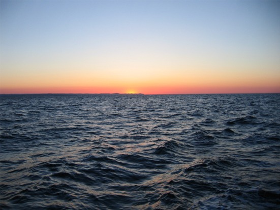 Auringon nousu lähestyessämme Portugalin rannikkoa.