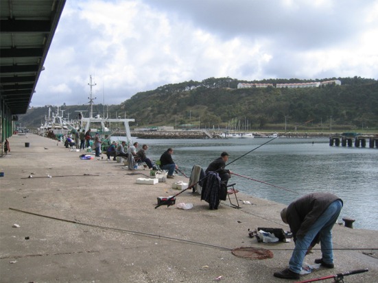 Satama-altaan laidalla oli jatkuvasti onkijoita...