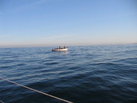 Kalastajien merkkikieli on kansainvälistä: nämäkin kalamiehet elehtivät saamiensa kalojen kokoa täydellä sylen mitalla (nostaessaan tyhjiä verkkoja!).