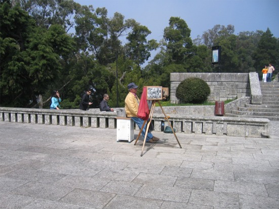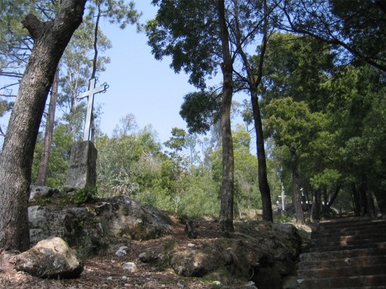 Mäelle johtavien satojen portaiden loppupäässä oli tasaisin välein ristejä (ei kai portaiden nousussa nääntyneiden muistoksi).