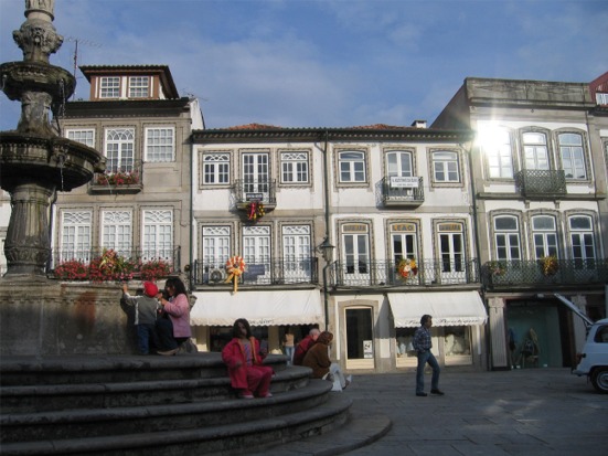 Saapuminen Viana do Casteloon. Ylhäälle mäelle kiipesimme seuraavana päivänä.