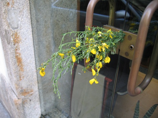 Ovissa ja postiluukuissa oli oksia tästä keltaisesta kukasta.