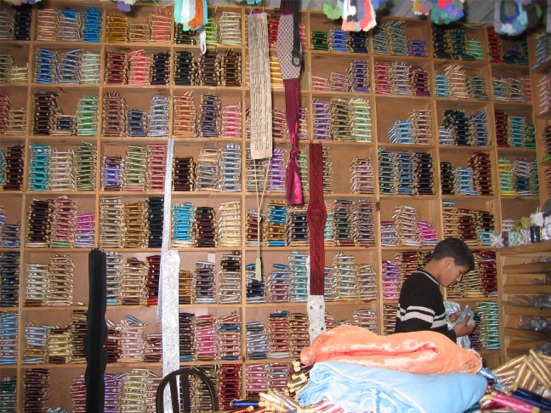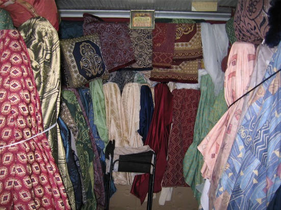 Kankaita ja vaatteita oli myynnissä omalla alueellaan.