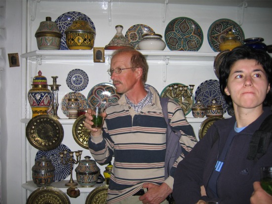 Myytiin mattokaupassa muutakin kuin vain mattoja. Esittelyn lopuksi tarjottiin minttuteetä.