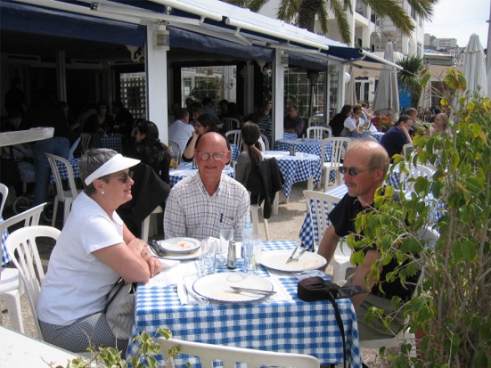 Lounas Gibraltarilla, vasemmalla Irma ja keskellä Tuomo.