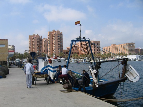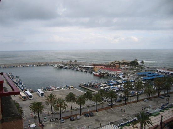 Fuengirolan kalasatama, näkymä hotellihuoneestamme.