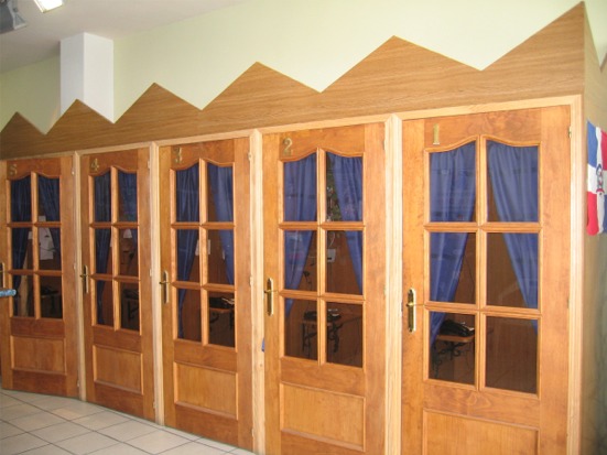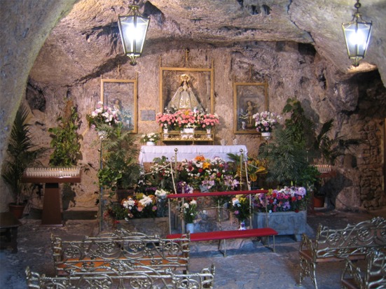 Fuengirolan pohjoispuolella Mijaksessa kirkon sisäänkäynti (kuvan henkilöitä emme tunne).