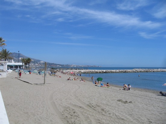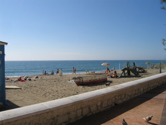 Itätuulella maininkien sortumista Fuengirolan rantaan.