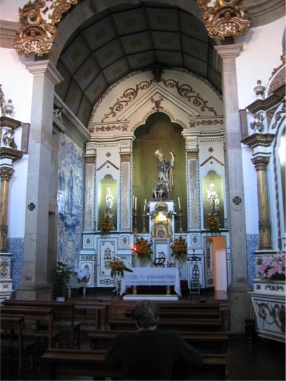 Kirkot olivat koristeellisia ja sielläkin oli kaakelipintoja (usein sinivalkoisia).Torstaiaamuna 16.9. lähdimme kauniissa auringon paisteessa ja mukavalla itätuulella purjehtimaan kohti Lissabonia. Suunnitelmissamme oli mennä yön ylitse, sillä seuraavaan satamaan (se olisi Ribeiro da Foz, kun Leixoes on suljettu) emme ehtisi ennen pimeän tuloa. Näytti siltä, että myös Nazareen kohdalla olisimme pimeällä, joten ajattelimme jatkaa yön ylitse ja katsoa ennen seuraavan päivän iltaa, missä olemme. Parin tunnin purjehduksen jälkeen tuuli heikkeni niin, että koneella ajelimme pari tuntia. Tuulen uudelleen virittyä, tällä kertaa luoteesta, saimmekin purjehtia iltaan asti, suurimman osan ajasta virsikirjalla (spinnuakin olisi voinut käyttää, mutta se olisi voinut olla vähän työlästä verkkoja väistellessä). Verkkoja tähystelimme jatkuvasti ja pujottelimme keppien välissä, vaikka olimme sentään 5 mailia ulkona rannasta.