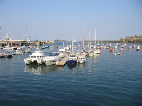 St Peter Portissa Guernseyllä vietimme neljä yötä. Tullessamme torstaina 26.5. marinassa oli runsaasti tilaa, mutta perjantaina ja lauantaina marina täyttyi lähinnä englantilaisista veneistä niin, että useita veneitä kiinnittyi kylkikylkeen. Sunnuntaina teimme jälleen paikallisbussilla puolentoista tunnin kiertoajelun (0,5 £ / henk.). Oli hyvä tapa nähdä saarta. Sunnuntain lounaspaikkaa etsiessämme totesimme, miten Guernsey (Englanti) poikkeaa Espanjasta. Kun Espanjassa olimme tottuneet, ettei lounaalle kannata lähteä juurikaan ennen klo 14, niin nyt meinasimme samalla aikataululla jäädä ruuatta. Lounasaika olikin pääasiassa klo 12-14. Toinen ero oli siinä, että Espanjassa sunnuntailounas oli perheille tärkeä juttu; ihmisiä oli liikkeellä paljon, mutta Guernseyllä monet ravintolat olivatkin sunnuntaisin suljettuja. Jo aiemmin olimme havainneet, että iltaisin täytyy pitää huoli, jos aikoo ehtiä ruokakauppaan. Espanjassa kaupat olivat auki klo 20-22 asti, mutta nyt ne sulkeutuivatkin jo klo 17.30. Siestaa ei tietenkään ollut välissä.