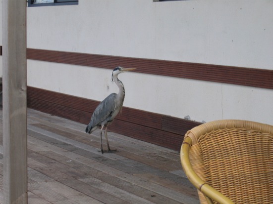 Harmaahaikara kärkkyy (?) makupaloja Scheveningenin marinan ravintolan keittiöstä.Olen useamman kerran kirjoittanut, miten vuorovedet säätelevät kulkuamme. Joku voi kuvitella, että kulkumme on kovin rajoittunutta, mutta oikeastaan olemme edenneet ihan mukavasti, emmekä ole kokeneet vuorovesiä mitenkään hankaliksi. On joitakin paikkoja (mm. Chanel du Four Biskajan pohjoispäässä ja Race of Alderney Kanaalin saarten luona), joissa ei todellakaan pidä olla väärällä hetkellä. Jos siellä kova tuuli ja vuorovesivirta ovat vastakkaisiin suuntiin, niin paikka voi olla suorastaan vaarallinen merenkäyntinsä vuoksi. Joskus virta voi olla niin voimakas, että vastavirtaan ei purjeveneellä kerta kaikkiaan pääse eteenpäin. Muuten meidän virtojen tarkkailu on kohdistunut lähinnä siihen, että olemme koettaneet päästä mahdollisimman nopeasti paikasta toiseen. Onhan ihan eri asia edetä myötävirralla 7-8 solmun nopeudella kuin vastavirralla 3-4 solmun nopeutta. Jos edessä on pitkä taival, niin silloin myötä- ja vastavirtoja osuu kohdalle useita eikä lähdön ajoitus ole niin tärkeä, ellei satamasta uloslähdössä tarvitse olla tarkkana virran suhteen. Nämä voi kuulostaa monimutkaiselta, mutta meidän mielestämme vuorovedet ovat olleet paljon helpompi juttu kuin etukäteen luulimme. Reedsin Nautical Almanacia (yli 1000 sivua) olemme kyllä lukeneet kovasti ja sieltä löytyy niin tiedot satamista kuin vuorovesistä, säätiedotuksista, ensiavusta ja paljon muustakin. Kyseisen opuksen kannessa sitä nimitetäänkin "Purjehtijan raamatuksi". Toki onhan olemassa myös vastaavia teoksia joku muukin, niin englantilaisia kuin ranskalaisiakin. Kyseinen teos kattaa alueen Tanskasta Gibraltarin salmeen.
