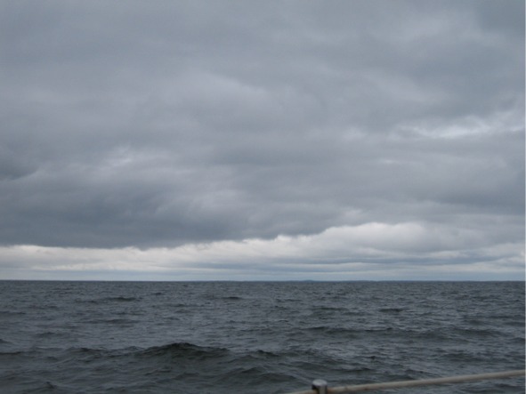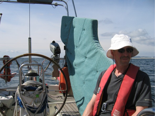 Iltapäivästä tuuli heikkeni niin, että ajoimme tunnin koneella. Samalla tuuli kääntyi lännestä etelän kautta kaakkoon. Lämpötila oli mukavat 24 astetta. Tuulen käännyttyä se virisi uudelleen ja pääsimme jälleen purjehtimaan mukavan leppoisan tasaisessa kelissä.