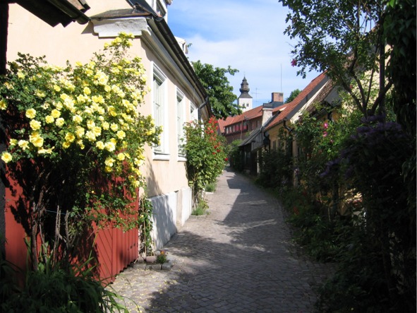 Olemme käyneet kaksi kertaa aiemmin Visbyssä. Ensimmäinen kerta oli vuonna 1994 edellisellä veneellämme Sunwind 26:lla. Siinä oli silloin eri tavalla todellista seikkailun ja saavutuksen tuntua kuin nyt tämänkertaisessa saapumisessamme. Mieleeni on syöpynyt kuva siitä, mitä näin, kun lähestyimme Visbytä, muistan jopa mitä lähestyessämme söimme. Olihan se iso juttu tulla 26 jalkaisella veneellä Saimaalta Gotlantiin. Seuraavana vuonna tosin uskaltauduimme jo Götän kanavan kautta Etelä-Ruotsin kiertoon. Nyt Visbyyn saapuminen ei tuntunut enää samanlaiselta saavutukselta, onhan meillä nyt suurempi vene ja jonkin verran enemmän kokemusta avomerestä. Tällä kertaa me vain lähdimme Utöstä ja tulimme Gotlantiin. Kaikesta huolimatta Itämeren keleihin täytyy aina suhtautua tietyllä kunnioituksella. Toisen kerran kävimme Visbyssä vuonna 2000, jolloin meillä oli jo tämä vene. Siitä päällimmäisenä mieleen jäänyt asia on se, kun ystävämme Raila ja Jussi saapuivat laivalla Visbyyn lähteäkseen kanssamme Suvisussulla kohti Suomea. Heidän saavuttuaan kauniit kesäsäät vaihtuivat sadekauteen. Ensimmäisen vuorokauden aikana satoi todella rankasti, Etelä-Gotlannissa Hoburgissa yli 70 mm ja tuuli 15-17 m/s. Odottelimme vielä toisenkin päivän ennen kuin lähdimme kohti Nynäshamnia. Seuraavinakin päivinä satoi ja kuulimme uutisia Ruotsin keskiosassa sateen aiheuttamista tulvista. Yhteistä kaikille käynneille Visbyssä on se, että joka kerta olen käynyt ihastelemassa ja haistelemassa ruusuja, jotka nytkin yllätyksekseni jo kukkivat, vaikka on vasta kesäkuun puoliväli.
