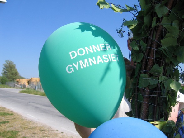Klintehamnin lukiolla oli koristuksissa ihan nimikoidut ilmapallot.