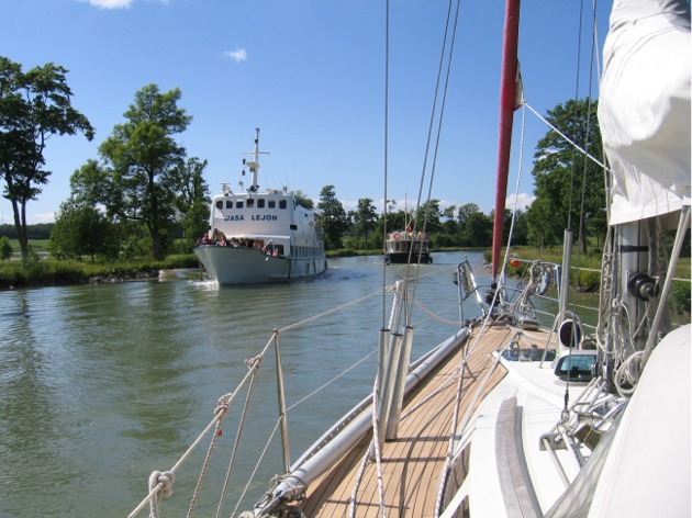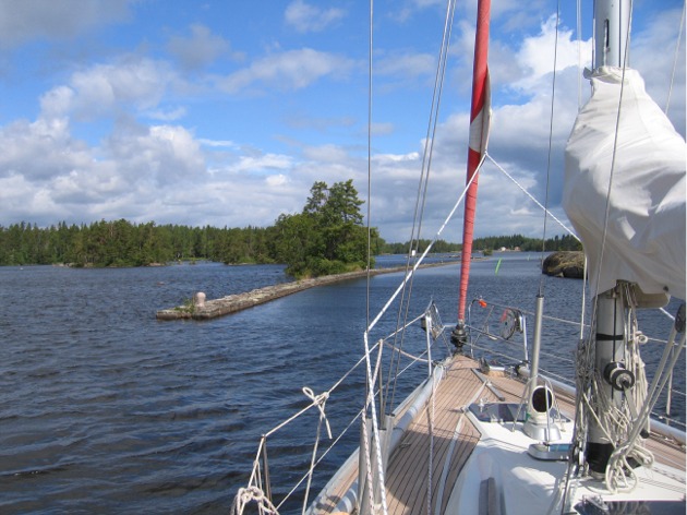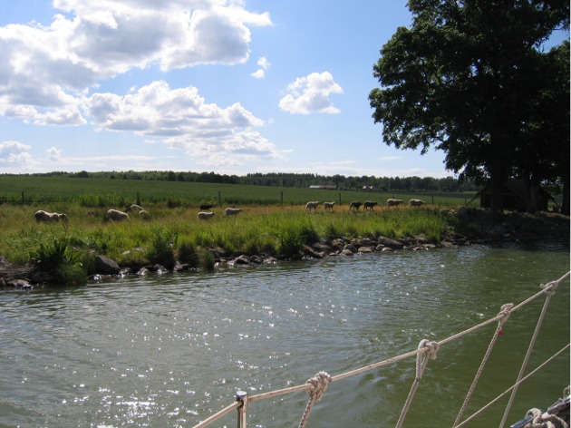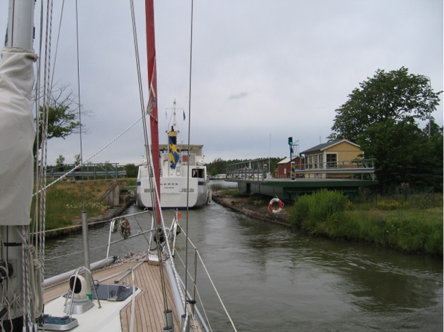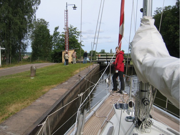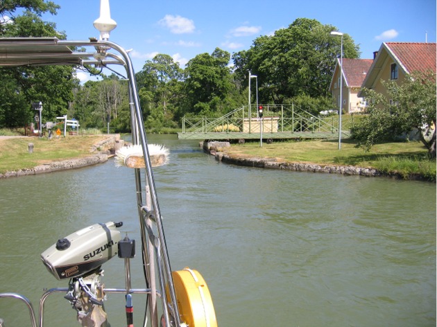Hyvät löylyt saimme ruotsalaisessa saunassa.Götan kanava on siis melkein ohitse, enää yksi kaksois- ja yksi yksöissulku jäljellä ja ne ovat aivan peräkkäin. Kanavamatka on ollut mukava, ei stressaava, kun osasimme jättää aikataulutavoitteet pois ja muuttaa suunnitelmia (eli tehdä automatkan) tilanteiden mukaan. Kahdestaan sulut onnistuvat aivan hyvin, mutta toki kolmannet kädet olisivat helpottaneet varsinkin ylöspäin mennessä kipparin hommia, kun hänen ei olisi tarvinnut huolehtia köysistä samaan aikaan sulkuun ajon kanssa. Kanava kulkee välillä maaseudun peltojen keskellä, missä saa seurata lampaiden ja lehmien elämää, välillä taas ollaan pikkukaupungeissa tai maaseututaajamissa. Monin paikoin on upeita jalopuukujia kanavan molemmin puolin. Alkumatkan jälkeen sää ei ole ollut kanavalla mikään kovin hääppöinen, mutta pahimmat sadeajat olemme pysyneet satamissa. Jos joku on innostunut pyörämatkailusta, niin Götan kanava olisi siihen oiva kohde, sillä koko ajan kanavan varrella kulkee pyörätiet ja maasto on mukavaa ja melko tasaista pyöräiltävää. Paljon näkyi sekä perheitä että myös meitä vanhempia ihmisiä pyöräilemässä. Kanavaa on veneellä helppo kulkea avuliaiden sulkuvahtien vuoksi, koska he seuraavat ja tiedottavat muusta liikenteestä. VHF:llä ei olla sulkuihin tai siltoihin yhteydessä . Osa silloista on kauko-ohjauksessa, osalla on miehitys paikalla. Yleensä sillat aukesivat niitä lähestyttäessä, välillä niiden aukaisulle oli tietty aikataulu (yleensä kaksi kertaa tunnissa) ja joskus täytyi rautatiesilloilla odottaa junien aikataulun mukaan.