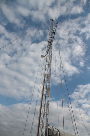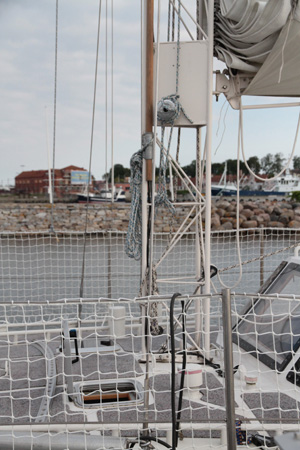Mielenkiintoinen purjeveneen masto Simrishamnin satamassa.