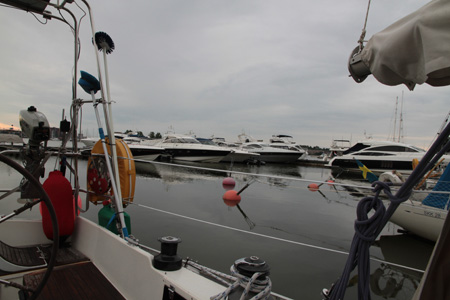 * Autopilottimme on ajanut aina (alle 10 vuotta sitten hankittu) vähemmän tai enemmän mutkitellen. Tänä keväänä hankimme siihen ruorikulma-anturan, jonka piti auttaa asiaan, vaan eipä tuntunut auttavan. Suomen puolelle palattuamme Ari soitti maahantuojalle ja sai ohjeen, miten se pitää "ottaa käyttöön" eli ohjausyksikön valikoista valita ensin jokin muu autopilottityyppi ja sitten valita uudelleen oikea tyyppi. Kun Ari oli tämän tehnyt, niin jopa muuttui kulku suoremmaksi.