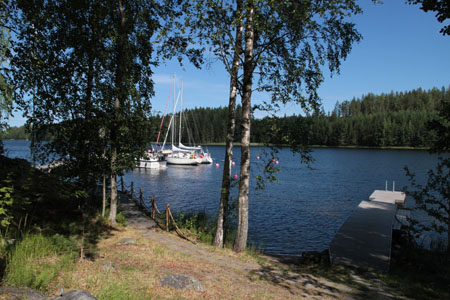 Saapuessamme laitureissa oli vain muutama vene, mutta iltapäivän ja illan aikana veneitä tuli lähes taukoamatta lisää. Kuitenkin tunnelma oli ihanan rauhallinen Maarianhaminan tohinan jälkeen ja kyllä satamaan jäi vielä tyhjiäkin paikkoja. Ari vuokrasi polkupyörän ja kävi 5 km päässä kaupassa ostamassa leipää. Kun edellisenä päivänä olimme Maarianhaminassa menneet kauppaan vähän ennen sen sulkeutumista (sunnuntaina jo klo 17!), niin leipähyllyt olivat olleet kovin tyhjät. Edellisen kerran Kastelholmassa ollessamme oli sielläkin ollut vielä kauppa, vaan ei enää. Illalla sauna maittoi hyvin helteisen päivän päätteeksi.