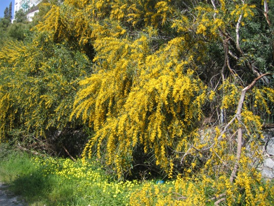 Maaliskuussa mimoosat (akaasiat) kukkivat joka paikassa keltaisenaan. |