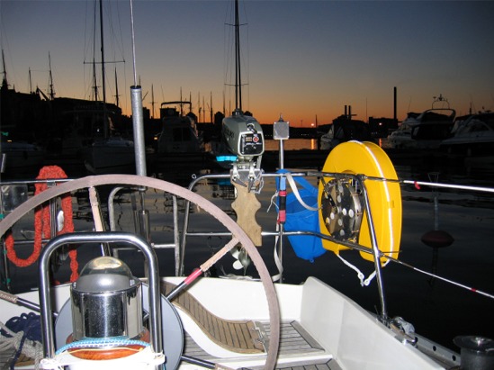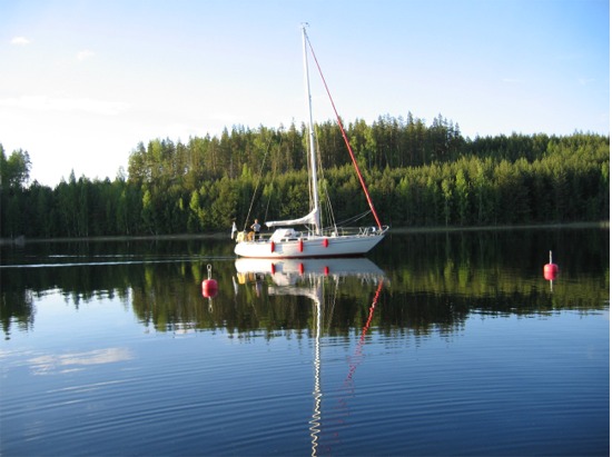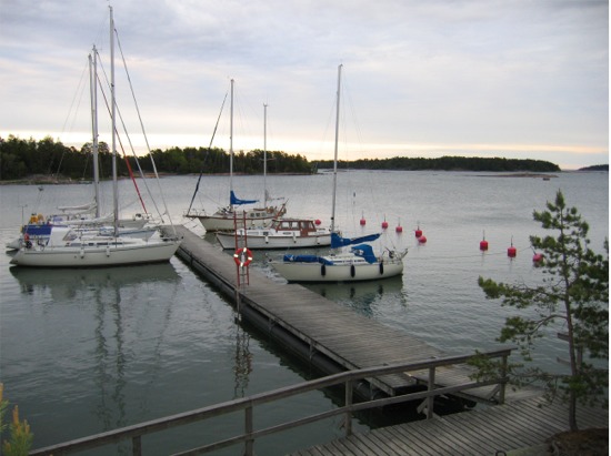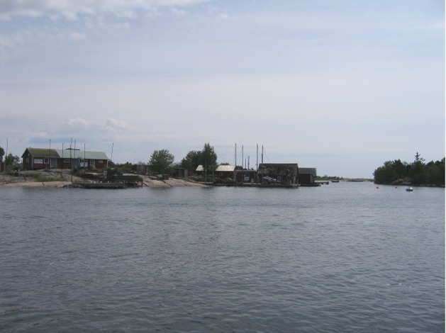 Ruotsin puolella ensimmäinen satama oli Bullandö, jossa kiinnityksenä on pohja-ankkuri |