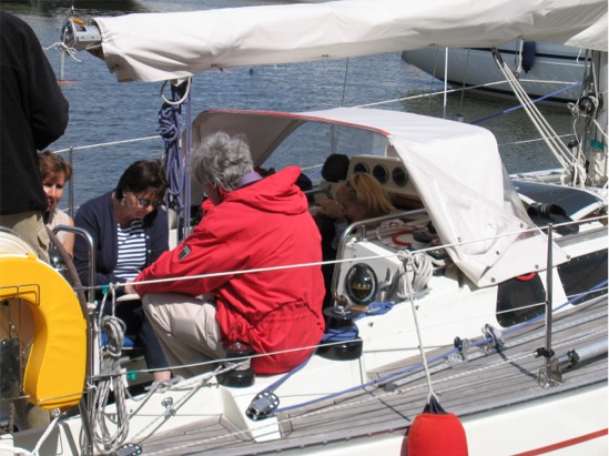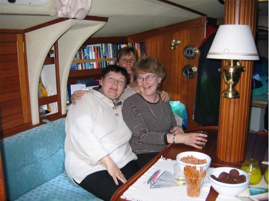 Marja ja Asta, taustalla Aila kajuutan lämmössä |