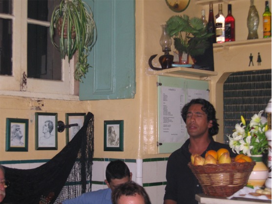 Tunnelmallinen laulaja Fado-ravintolassa Alfamassa. |