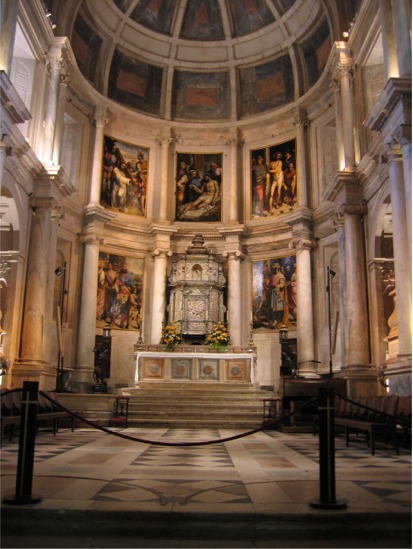 Sama kirkko ylhäältä parvelta kuvattuna. |