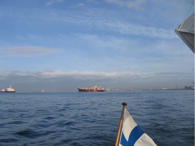 Gibraltarin lahdella oli lähtiessämme paljon laivoja ankkurissa, mm. tankkausta varten. |