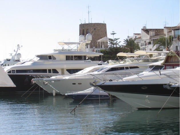 Sunnuntaina suuntasimme kulkumme länteen päin. Tässä Jose Panuksen marinan komeita veneitä. |