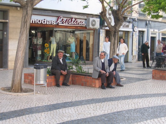 Miehet päiväturinoilla. Huomaa katukiveyksien kuvioinnit.
