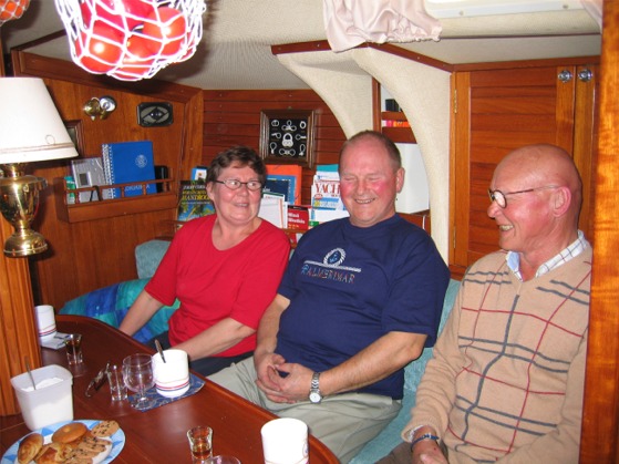 Marjatta, Martti ja Tuomo meillä sunnuntailounaalla, tässä jo jälkiruokakahvilla.