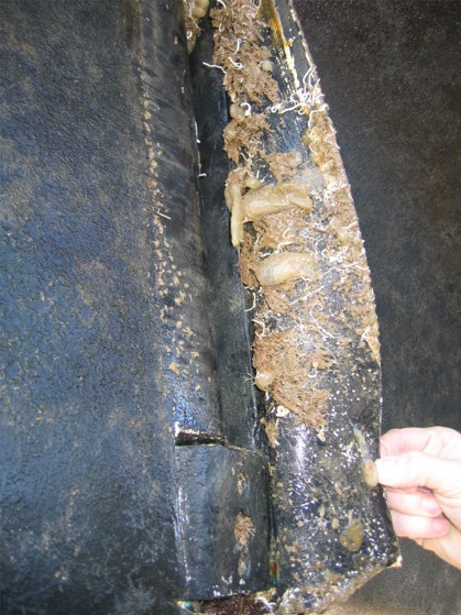 Peräsimen etupuolella olevan kumiläpän alla oli mielenkiintoista eliökasvua.