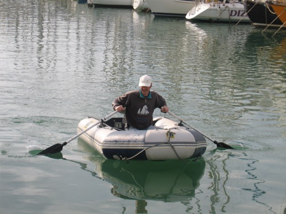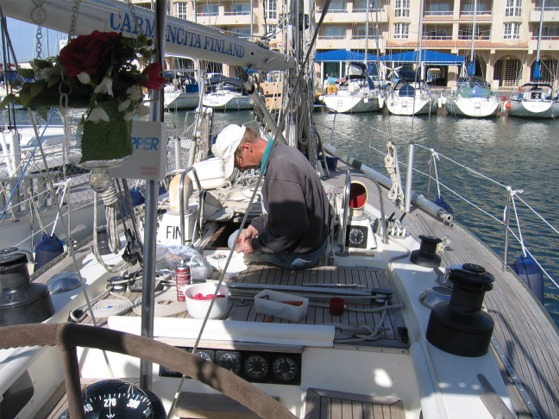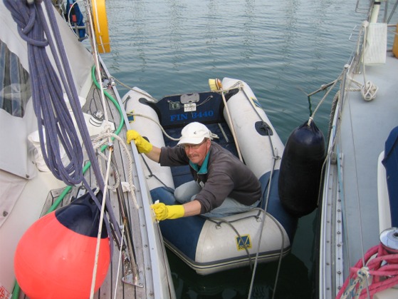 Välillä Ari puuhaili Tuomon veneen huoltohommissa.