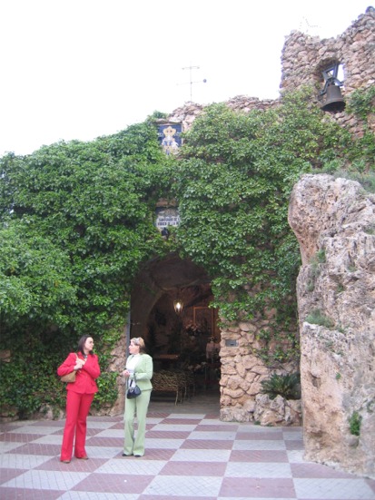 Fuengirolan pohjoispuolella Mijaksessa kirkon sisäänkäynti (kuvan henkilöitä emme tunne).
