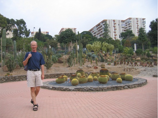 Benalmadenan kasvitieteellisessä puutarhassa oli komea kaktuskokoelma.Kaupungilla kävelimme useana päivänä todella runsaasti (yhtenä päivänä yli 20 km). Benalmadenan naapurissa noin 3-4 kilometrin päässä on Torremolinos ja sielläkin kävimme useamman kerran. Kävelymme päätavoitteita oli etsiä polkupyörät. Aioimme ostaa käytetyt pyörät, mutta niitä emme löytäneet, joten lopulta ostimme uudet pyörät. Saa nähdä sitten ensi keväänä, saammeko ne kuljetettua Suomeen vai myymmekö pois. Olipa mukava päästä liikkumaan pyörällä; niillä pyyhälsi vikkelästi kauppaan ja venesatamassakin suihkuun, jonne meidän veneeltämme oli matkaa yli 600 metriä. Samoin tuo joka aamuinen satamakonttorissa käynti hoitui helpommin. Satamakonttori oli veneeltämme vesitse vain noin 100 metrin päässä, mutta maitse sinne piti kiertää koko polveileva satama-allas, jolloin matkaa tuli noin 1,5 km yhteen suuntaan. Teimmepä yhtenä päivänä yli 40 km pyörälenkinkin.